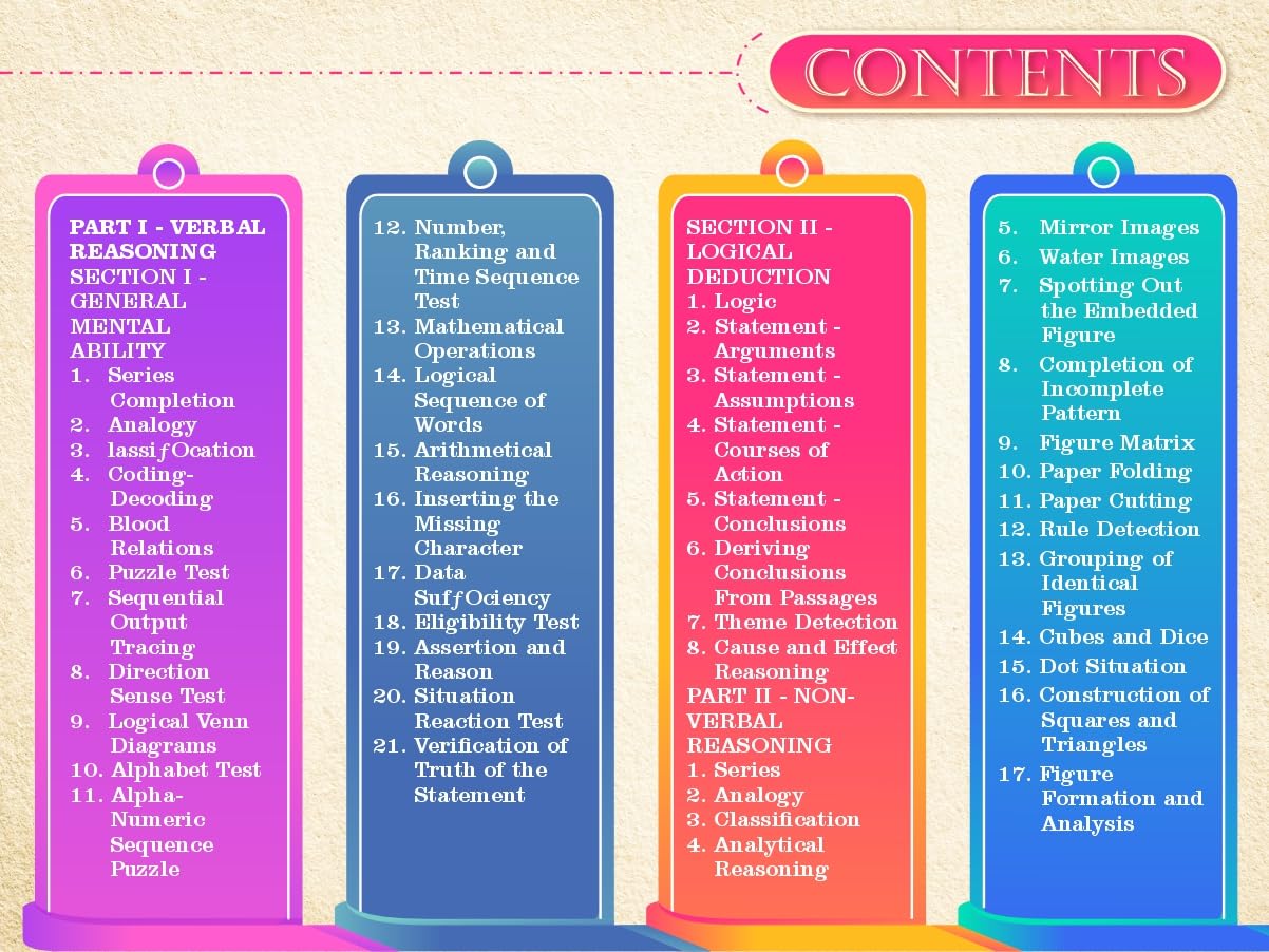 This book teaches you quicker and smarter ways to solve reasoning questions. With lots of practice questions and video solutions, it prepares you for all kinds of competitive exams and helps you build strong reasoning skills.