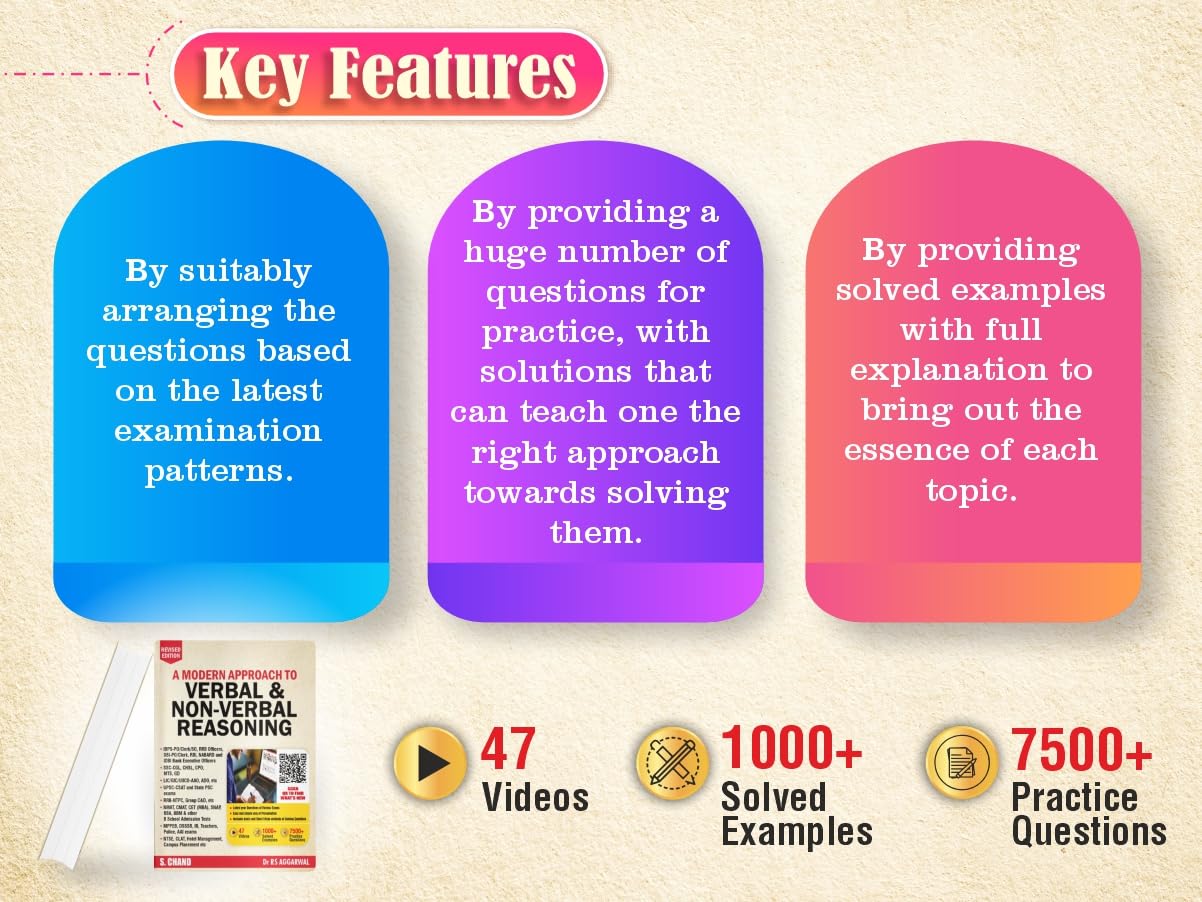 The revised edition of A Modern Approach to Verbal & Non-Verbal Reasoning by Dr. R.S. Aggarwal is a helpful book for students preparing for competitive exams. This new edition includes more questions from recent exams like SSC, RRB, IBPS, AFCAT, SBI, RBI Grade B, and others, following the latest exam trends.