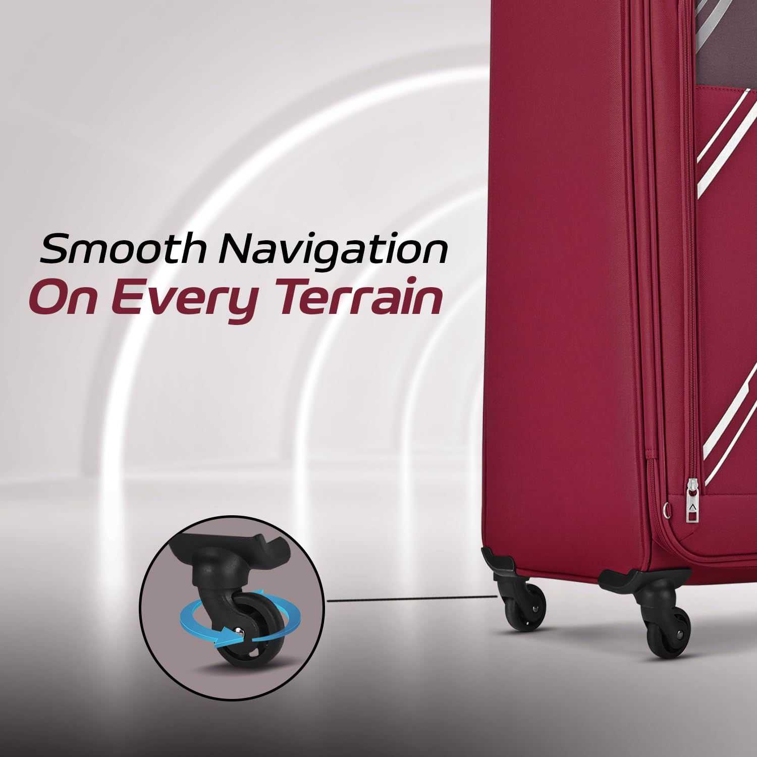 Aristocrat Polyester Trigon Hexa Active Luggage Set Of 6-3 Trolley Bags (Cabin 55Cm+69Cm+79Cm) & 3 Duffle Bags 52Cm For Travel With 5 Years International Warranty (Red,soft,4 Spinner)