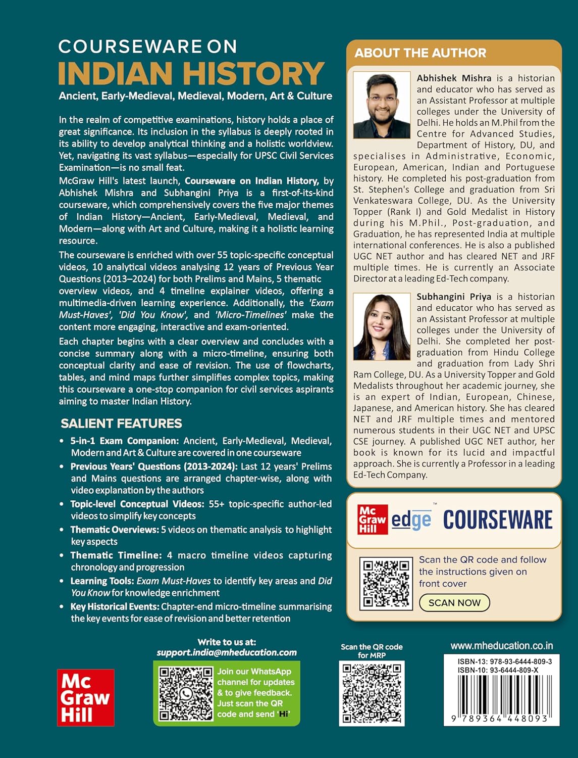 History is one of the most captivating and relevant subjects to explore, offering insights into the past that shape our present. McGraw Hill’s latest launch, Courseware on Indian History, is designed to enrich the reader’s experience by blending storytelling with historical analysis. Authored by Abhishek Mishra and Subhangini Priya, this courseware unravels India’s fascinating heritage, covering all crucial aspects essential for UPSC and State Civil Services Examinations.