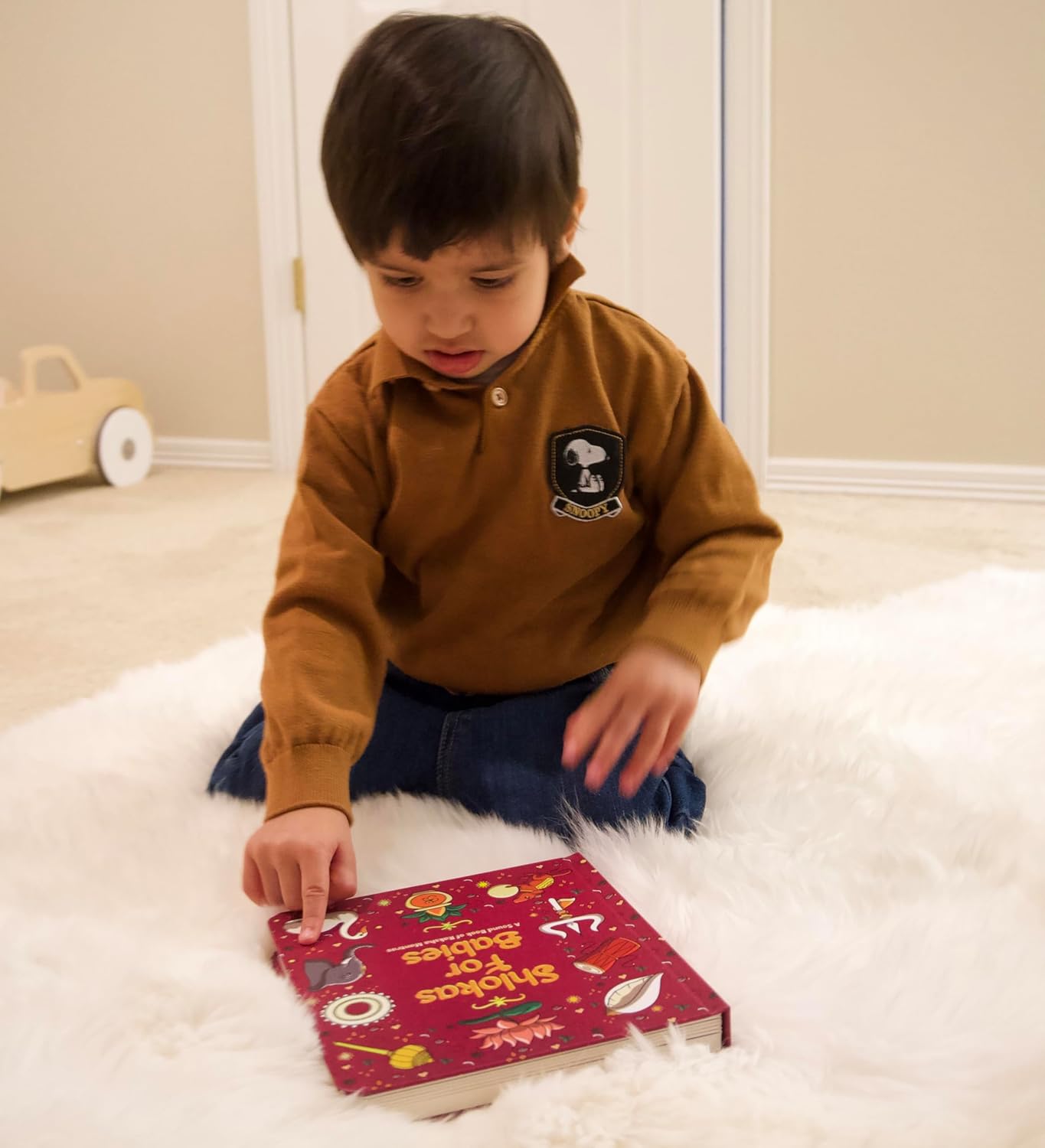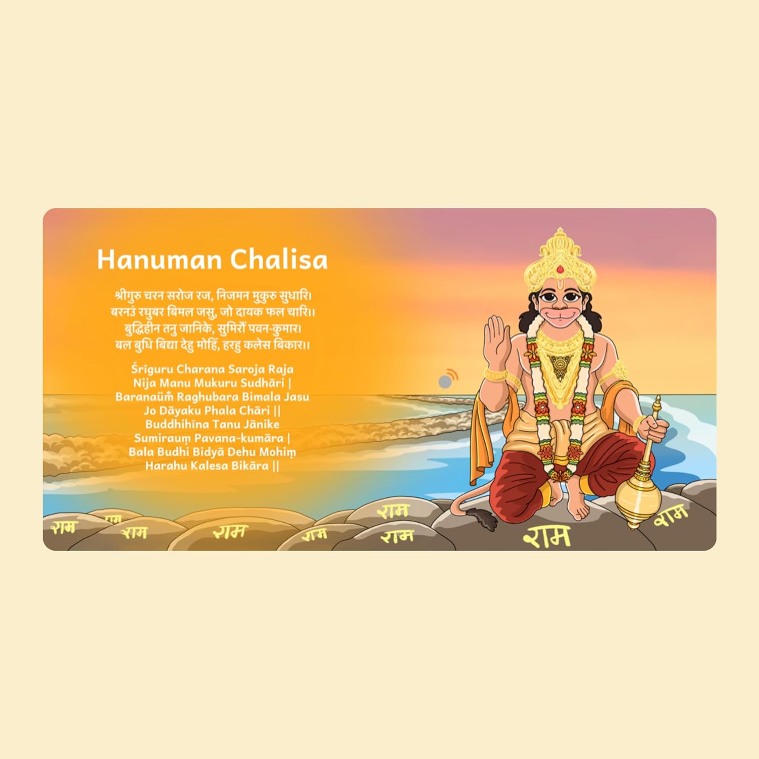 Introduce your little one to the world of Hindu shlokas with Shlokas for Babies. This sound book features six shlokas, chosen for their protective qualities. Shlokas for babies is an interactive book, that gives parents a meaningful way to offer blessings of safety and comfort to their child. It’s a beautiful way to connect with India’s spiritual traditions while surrounding your baby with love and protection. Shlokas Included: Narasimha MantraGayatri MantraGanapati StutiHanuman ChalisaDurga MantraShiv Stuti